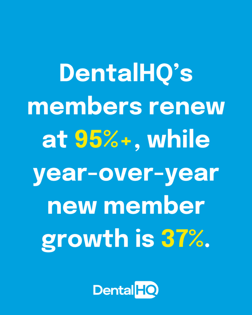 Want proof? DentalHQ’s members renew at 95%+, while year-over-year new member growth is 37%. Our platform works – and the data proves it.